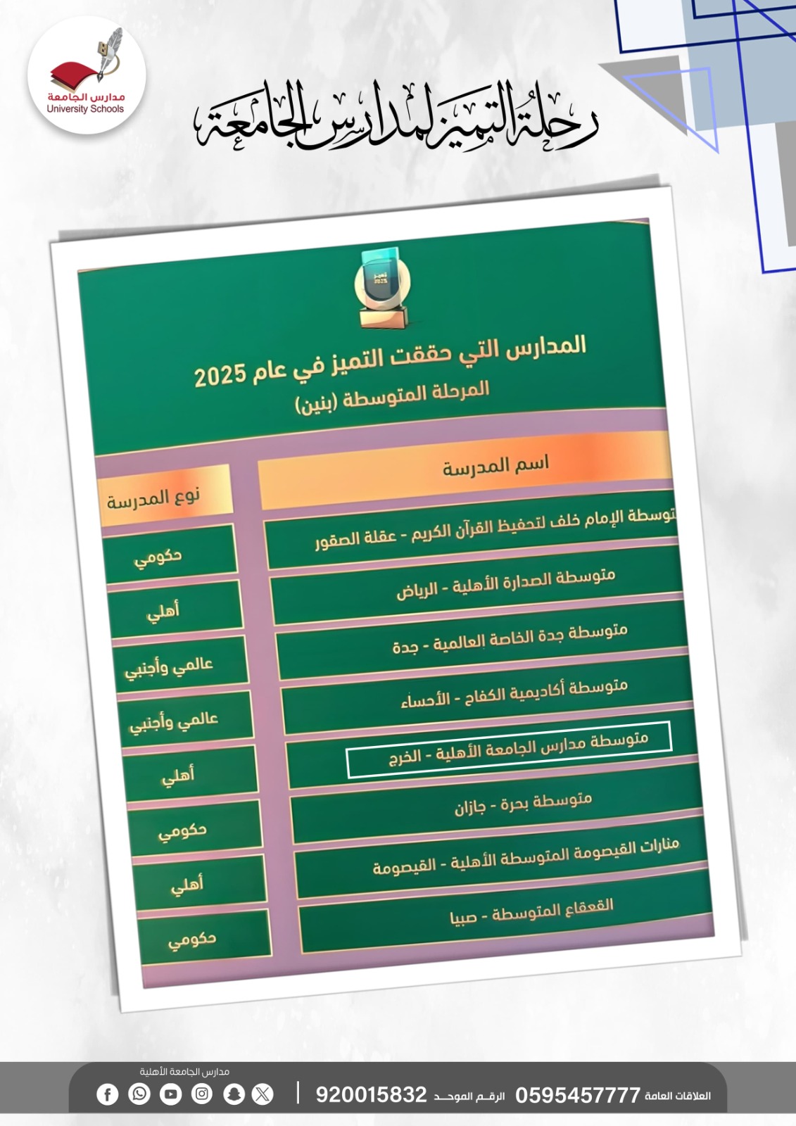 مدارس الجامعة تحصد التميز على مستوى المملكة